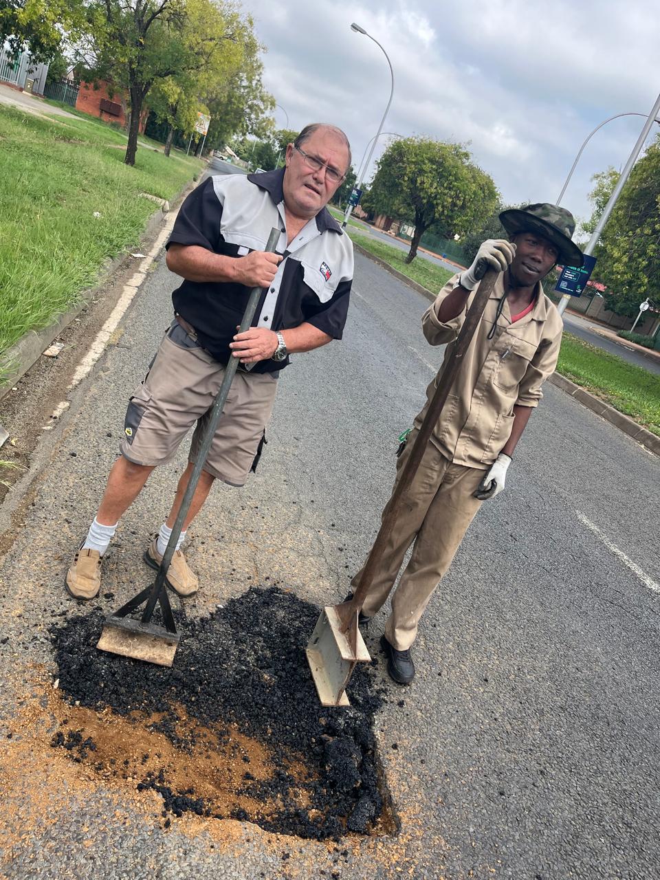 Sincere thanks to UWNA Projects Team for filling that huge pothole (that nearly caused a few serious accidents) in front of Rooikerk and also for mowing most of the median in De Bruyn Street today. UWNA would also like to thank Rooikerk’s Ds Hannes, Danie and Petrus, who assisted with mending the pothole. You’re superstars❣️🤝🌳🌸😃